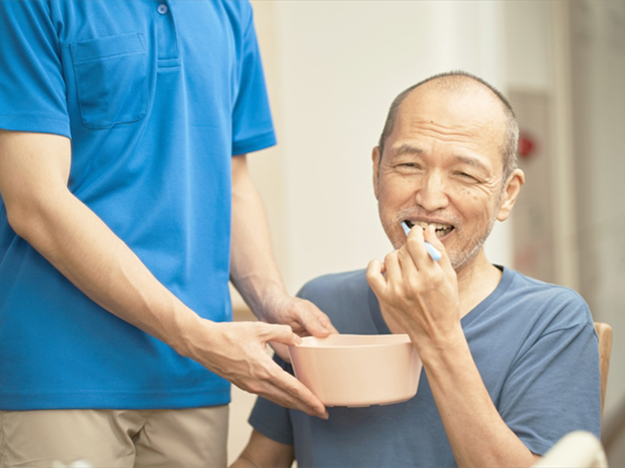 食事前には深呼吸、首や肩のストレッチ、舌のストレッチ、耳下腺・顎下腺のマッサージなどを行い、誤嚥を防ぎます。食後の口腔ケアでは、誤嚥性肺炎や口腔疾患を予防し、清潔を保ちます。個別の口腔機能訓練も行い、定期的な評価に基づき、呼吸機能や声帯強化などの訓練を実施します。